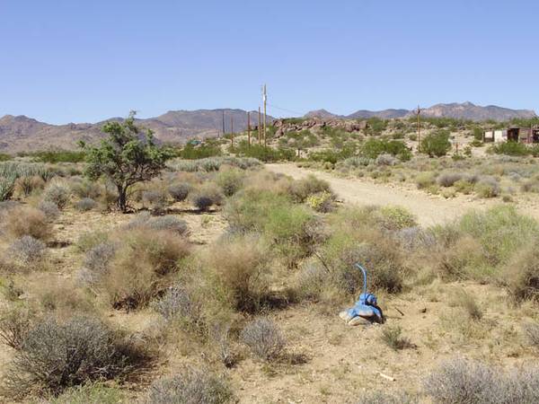 From Kingman head north on Stockton Rd. for 5.2 miles and turn right onto N Bull Mountain Rd. Go 1.2 miles to E Cactus Wren Rd. and turn right. Go 1 mile to Cherum Rd. and turn left. Go .5 miles to C11 Castano and turn right. Go 1.6 miles to N Bank St and turn left. Go 1 mile to E Calle Alamo and turn left. Go 1.2 miles to N. Avenida Ramirez and turn right. Property is .25 miles on the southeast corner of the next block. The roads are paved all the way to E Alamo then they are county maintained dirt roads for the last mile and a half.